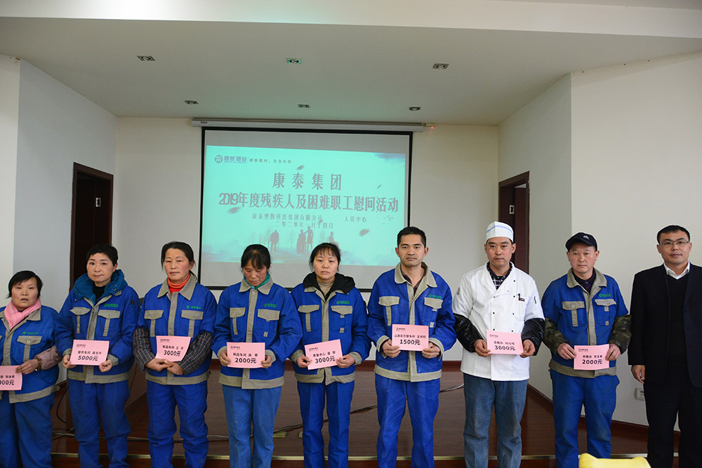 2020.01讓員工感受家的溫暖-康泰集團(tuán)向殘疾及困難職工發(fā)放慰問金圖為慰問現(xiàn)場“1500元、2000元、3000元、5000元……總計(jì)42500元”。這是1月14日,康泰集團(tuán)向17名殘疾及困難職工發(fā)放慰問金活動(dòng)現(xiàn)場。隨著一年一度新年的到來,康泰集團(tuán)再次拿出專項(xiàng)資金,表達(dá)公司對(duì)殘疾職工和家庭困難職...閱讀人數(shù):8179 -