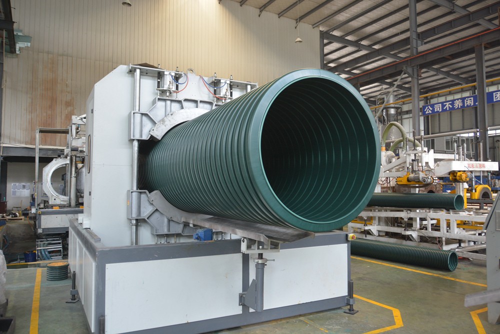 在康泰塑膠的產品展示廳,首先映入眼簾的是一根高約80厘米、直徑約20厘米、壁厚約2厘米的綠色波紋管道。由康泰塑膠研發(fā)團隊獨立研發(fā),填補了國際國內的空白,引發(fā)了塑料管道行業(yè)的一次革命。這就是是公司研發(fā)出的首款產品——MPVE?波紋管材。
