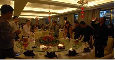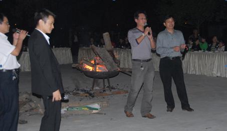 晚宴后,大家紛紛來(lái)到戶外,圍著篝火舉杯歡唱,在主持人幽默詼諧的帶領(lǐng)下,參與互動(dòng)的員工熱情高昂?;顒?dòng)一直持續(xù)到晚上10點(diǎn),大家仍然意猶未盡。