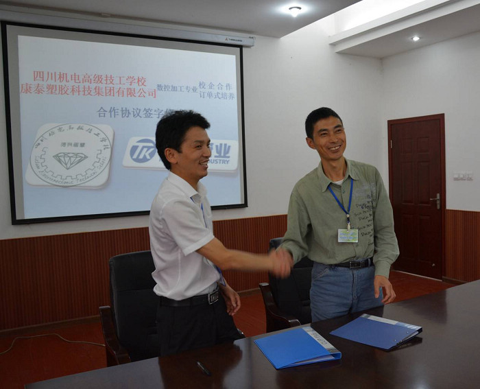 ?????? 2014年9月3日下午14:30,康泰塑膠科技集團有限公司與四川機電高級技工學校校企合作、訂單培養(yǎng)協(xié)議簽字儀式在四川機電高級技工學校第二會議室舉行。