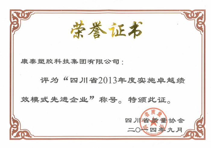?????? 卓越績效模式是80年代后期美國創(chuàng)建的一種世界級企業(yè)成功的管理模式,其核心是強化組織的顧客滿意意識和創(chuàng)新活動,追求卓越的經(jīng)營績效,引導企業(yè)持續(xù)改進,是不斷提升企業(yè)管理水平和綜合競爭能力的有效途徑??堤┘瘓F自2009年開始申報“省實施卓越績效模式先進企業(yè)”以來,連續(xù)六年獲此殊榮,實現(xiàn)了康泰集團質(zhì)量管理目標。