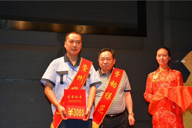 ??? 6月27下午,“崇州好職工”頒獎(jiǎng)儀式在崇州市文化館舉行,我公司工會主席吳彬及攜生產(chǎn)中心24名工人代表出席了頒獎(jiǎng)典禮,為陳定平同志鼎力喝彩!