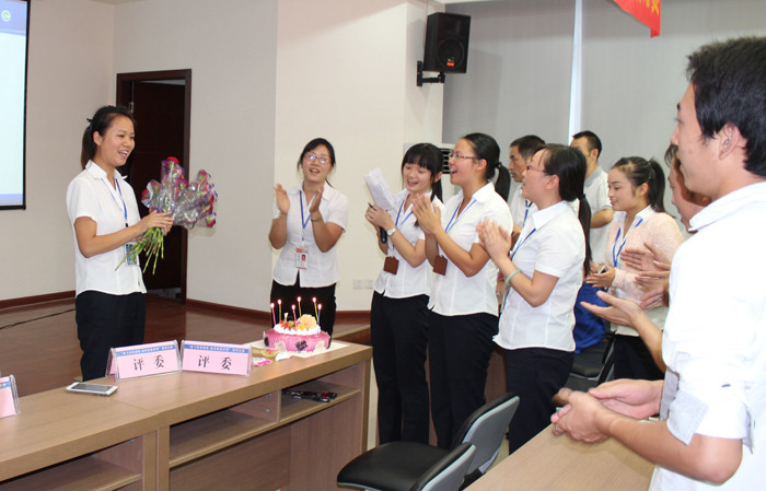 演講比賽結束后,9月員工生日會隆重舉行。很多9月生日的員工因為工作原因未能達到現場,隨著“祝你生日快樂”熟悉的旋律響起,一段9月生日員工的PPT向大家展示了9月壽星們在工作崗位上的精神風貌,而來自采供中心的何瑤代表他們接受了大家的鮮花與祝福。