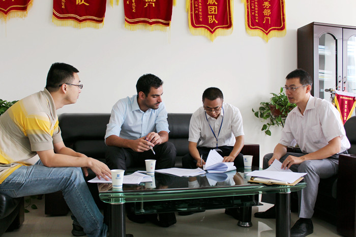 ??? 2013年8月8日上午,馬肯依瑪士公司法國總部產(chǎn)品發(fā)展經(jīng)理YONI一行來到我公司洽談標碼系統(tǒng)相關業(yè)務,由采供中心物資部采購經(jīng)理丁委員代表公司負責接待工作。