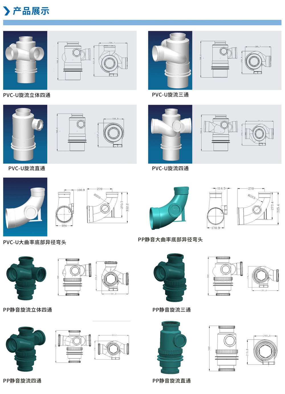 生產(chǎn)標(biāo)準(zhǔn):HTPP靜音排水系統(tǒng)CJ/T273-2012; PVC-U硬聚氯乙烯排水系統(tǒng)GB/T5836.2-2006